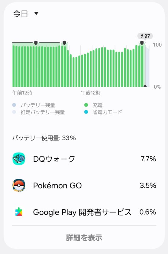 フォアグラウンドで起動していたポケモンGOよりも、バックグラウンドのドラクエウォークのほうが、バッテリーを使用しているという…(苦笑)