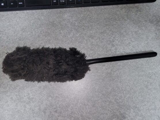 PC、モニター、マイクなど、デスク周りの機材は黒で統一していることが多いので、掃除道具も黒にするだけで「機材の一部」のように馴染みます。 これならデスクの端に置いておいても気になりません。