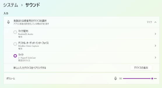 【重要・事前準備】Windows側のマイクボリュームを「90」にする