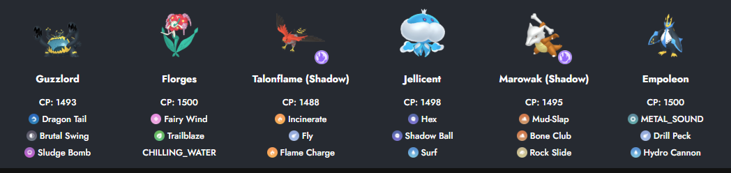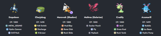 この上位5匹の並び、今のスーパーリーグ(SL)環境の縮図として非常に面白い結果になりました。一つずつ紐解いていきます。