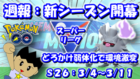 S26のスーパーリーグは、ラグラージ等が台頭したものの、ゴリ押しできるどろかけ型ポケモンの減少に伴い、エンペルト・ドラピオンといったポケモンが跋扈する混沌とした環境となっています。