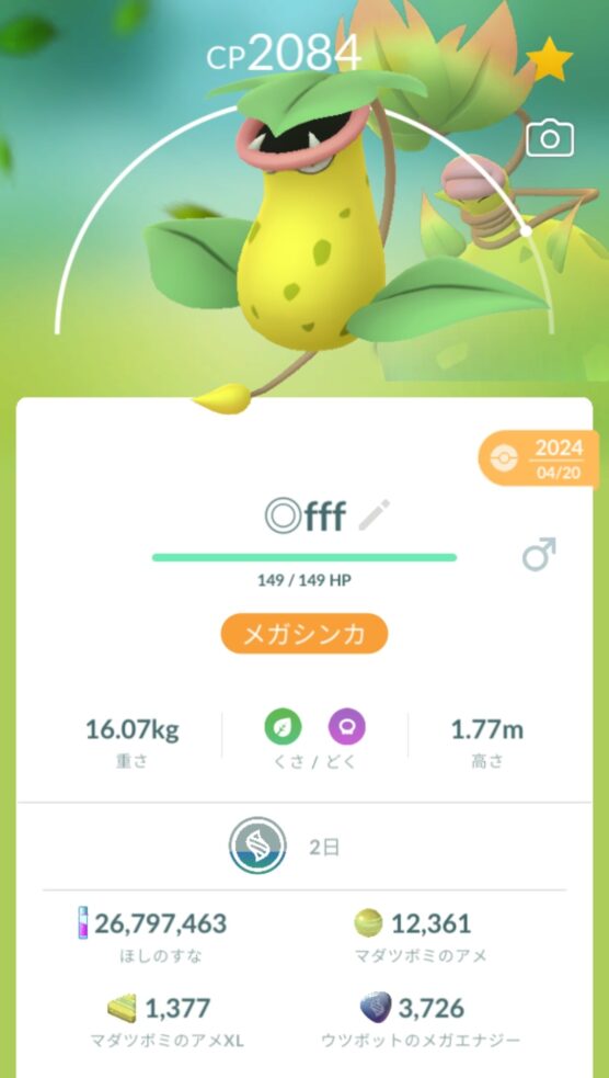 ウツボットが「Day1限定の出現」であることは把握していたのですが、私の事前のリサーチ不足により、Day1稼働の時点では「スーパーマックスレベルに5000エナジーも必要になる」という鬼仕様に気づけていませんでした。