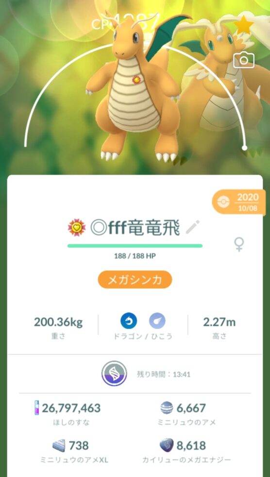 - カイリュー: 13,500エナジー(※1匹はスーパーマックス到達済み)