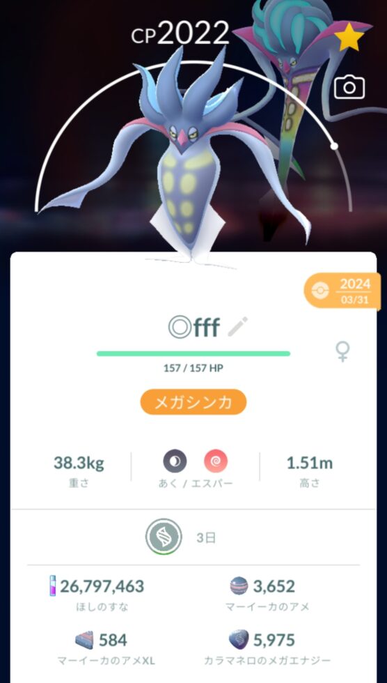 そのDay1の反省(情報収集の漏れ)があったからこそ、本日は「Day2限定出現」であるカラマネロのレイドを意識的に厚くこなし、無事に5000エナジーを到達させることができました。(カイリューは両日出現だったため、自然と集まりました)