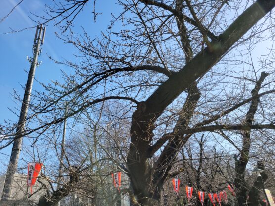 ↓春本番には少し早い上野公園。宴会禁止の注意書きを横目に、捕獲と交換を進めました。